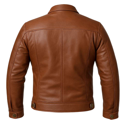 Buy Men Brown Vintage Leather Trucker Jacket – Genuine Leather Icon for Rugged Style, Everyday Comfort, Winter Warmth & All-Season Versatility