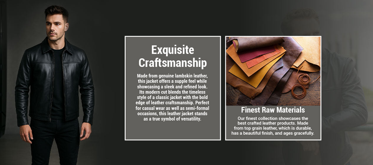 We begin with the best natural full-grain and top-grain hides that offer durability, strength, and comfort. Unlike imitation or split leather, ours grows richer with age, giving every jacket a character as unique as the person wearing it.